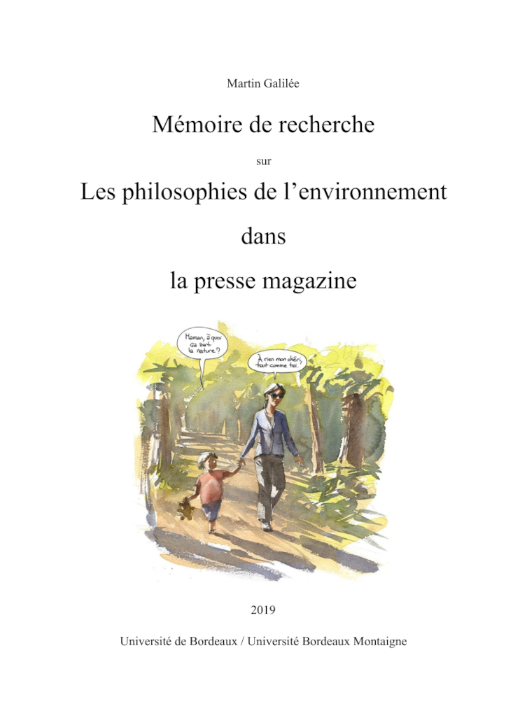Mémoire de master de médiation des sciences sur les philosophies de l'environnement dans la presse magazine, 2019